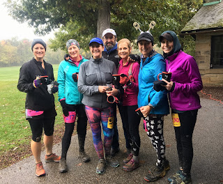 Of course the weather was the same: 43 degrees and rainy. Yuck. Luckily, we run in the woods, so we wouldn't get that wet from above. Running through the mud, however, was quite a different story. If mud baths are supposed to be good for the skin, I guarantee you that my feet and legs are glorious.